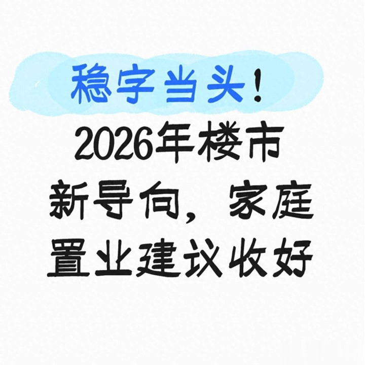 过去几年,楼市重点是“防风险、保交楼、止跌回稳”;2026年官方表述调整为**“着力稳定房地产市场”,意味着市场已经度过最困难阶段,进入修复信心、平稳运行、提质升级**的新阶段。